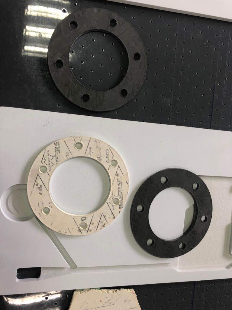 A) Computer controlled cutting of gasket materials straight from the CAD-system: production of items from single pieces to small batch production