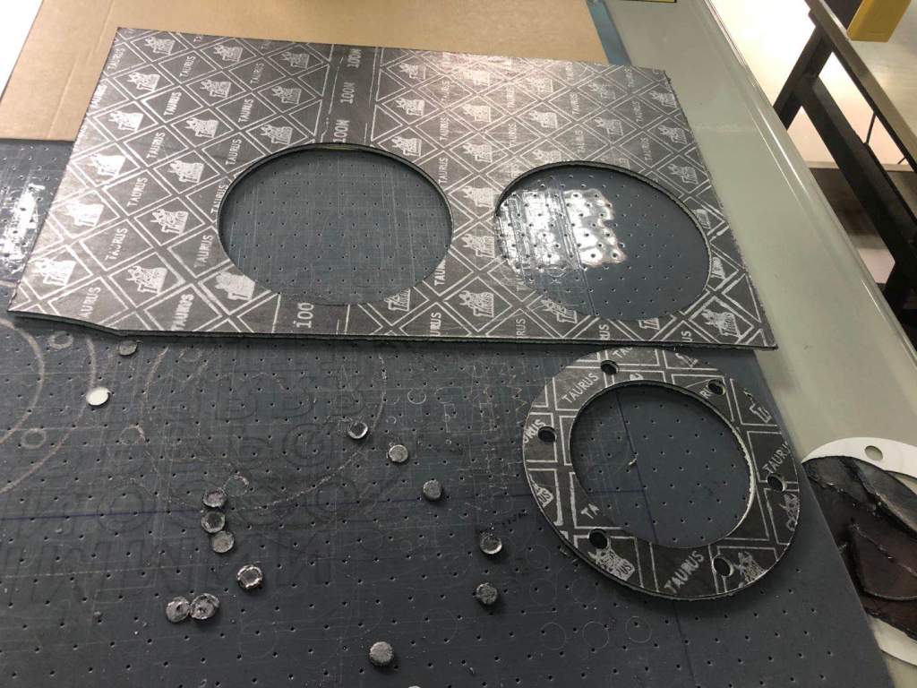A) Computer controlled cutting of gasket materials straight from the CAD-system: production of items from single pieces to small batch production