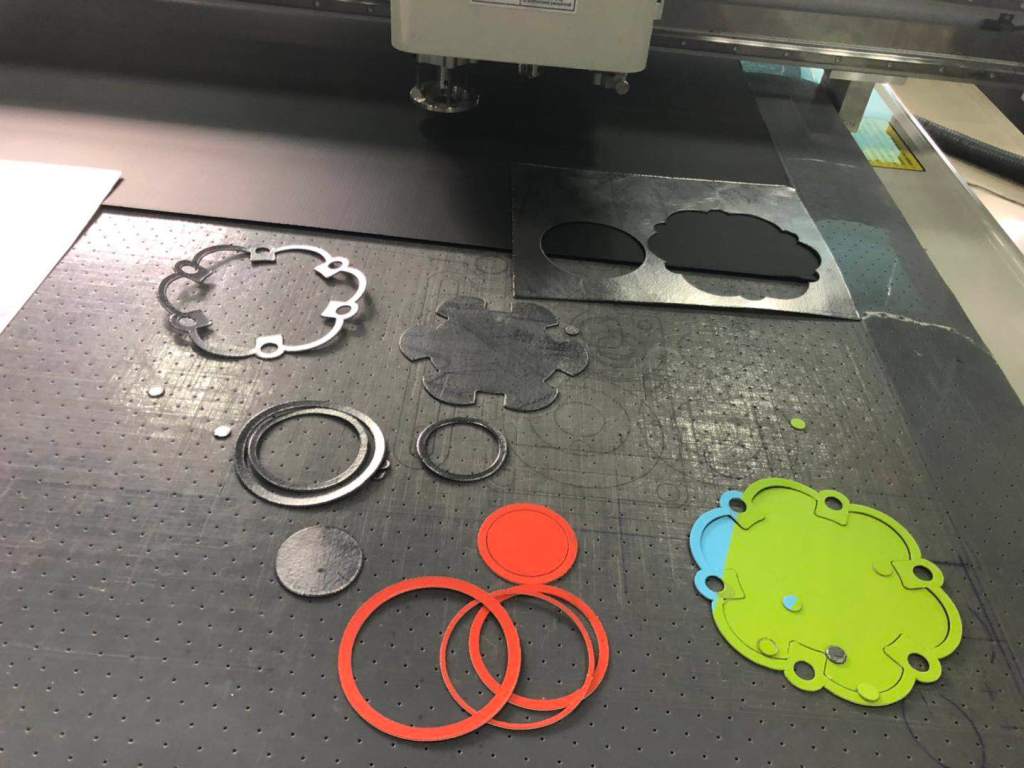 A) Computer controlled cutting of gasket materials straight from the CAD-system: production of items from single pieces to small batch production