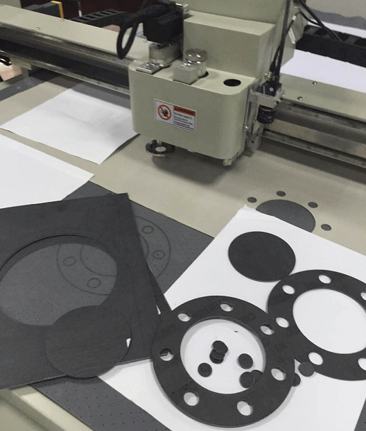 A) Computer controlled cutting of gasket materials straight from the CAD-system: production of items from single pieces to small batch production