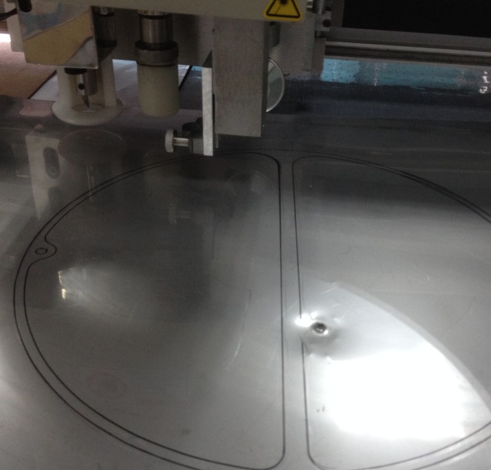 C) cutting table with integrated vacuum system,gasket material is securely fixed during processing due to equip with adjustable matrix-vacuum zones