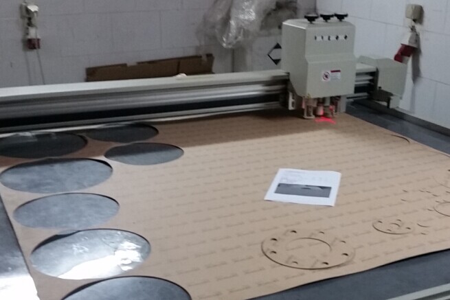 A) Computer controlled cutting of gasket materials straight from the CAD-system: production of items from single pieces to small batch production