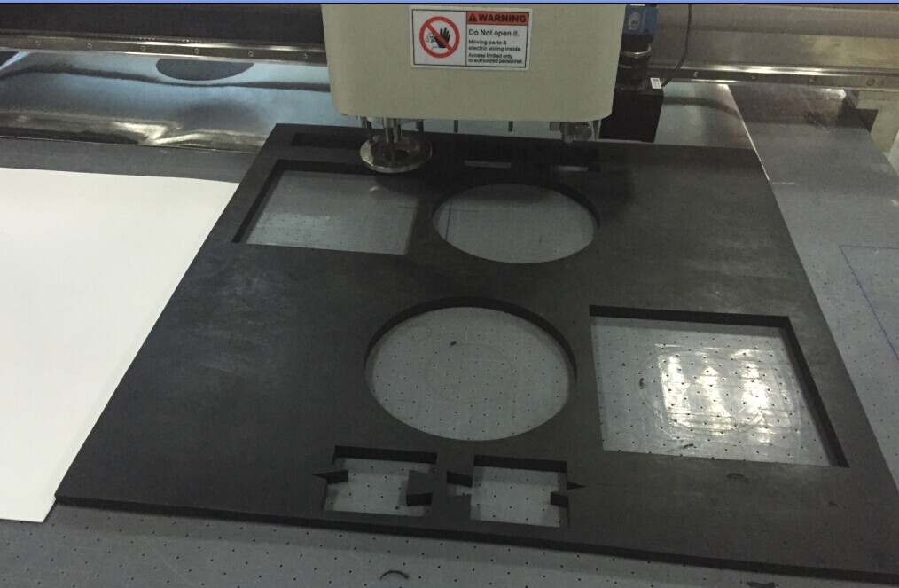 C) cutting table with integrated vacuum system,gasket material is securely fixed during processing due to equip with adjustable matrix-vacuum zones