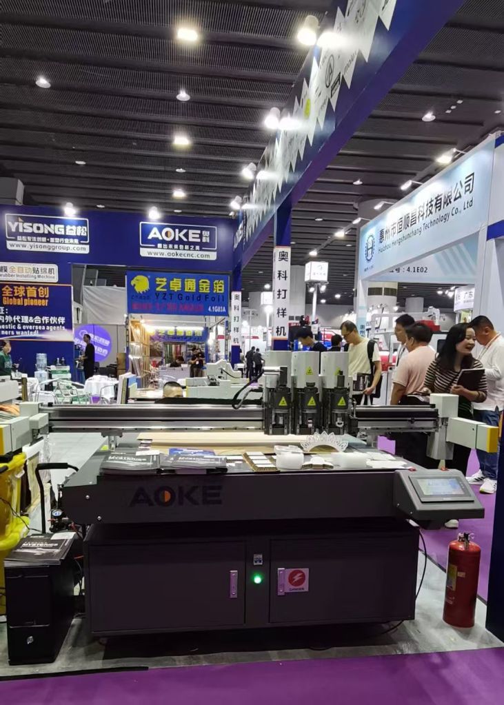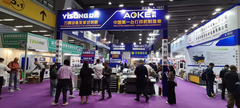 AOKE exhibition crowded with people Aoke cardboard box sample maker cutting machine flatbed plotter